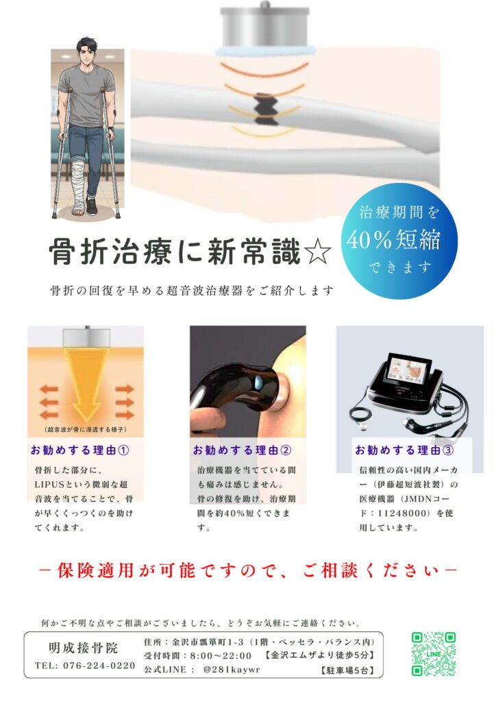 #骨折 #骨折治療 #疲労骨折 #早期回復 #超音波治療 #金沢市 #石川県 #接骨院 #整骨院 #スポーツ外傷 #早期復帰 #LIPUS